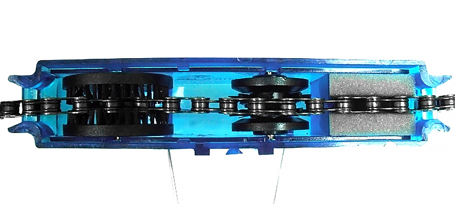 Duża nastawna szczotka czyści boki łańcucha, a 3 pozostałe środek łańcucha.